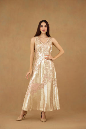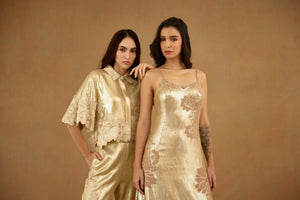 This green kaftan-style dress offers a relaxed fit that ensures comfort without compromising style. Expertly embellished, it adds a subtle yet elegant touch, making it ideal for occasions where ease and refinement are equally important. Its flowing silhouette flatters various body types, blending traditional charm with contemporary appeal.