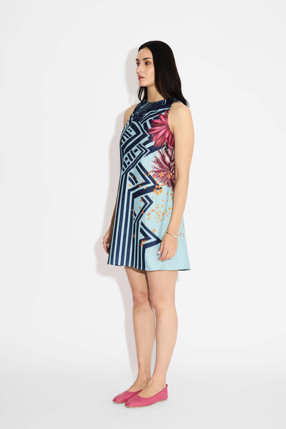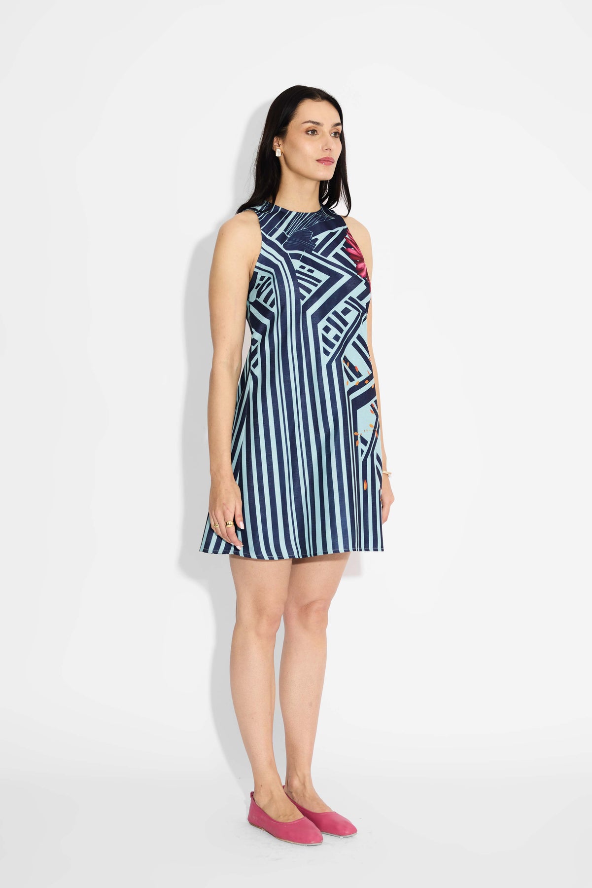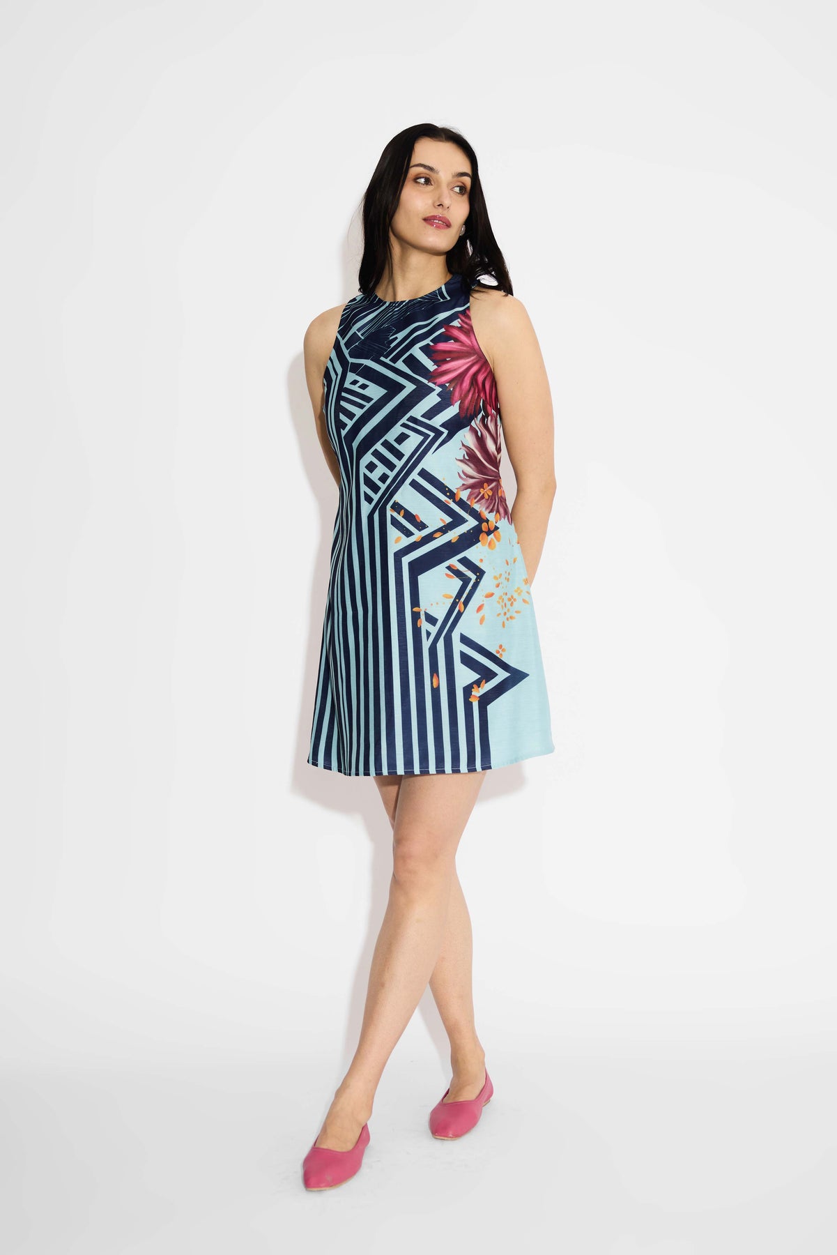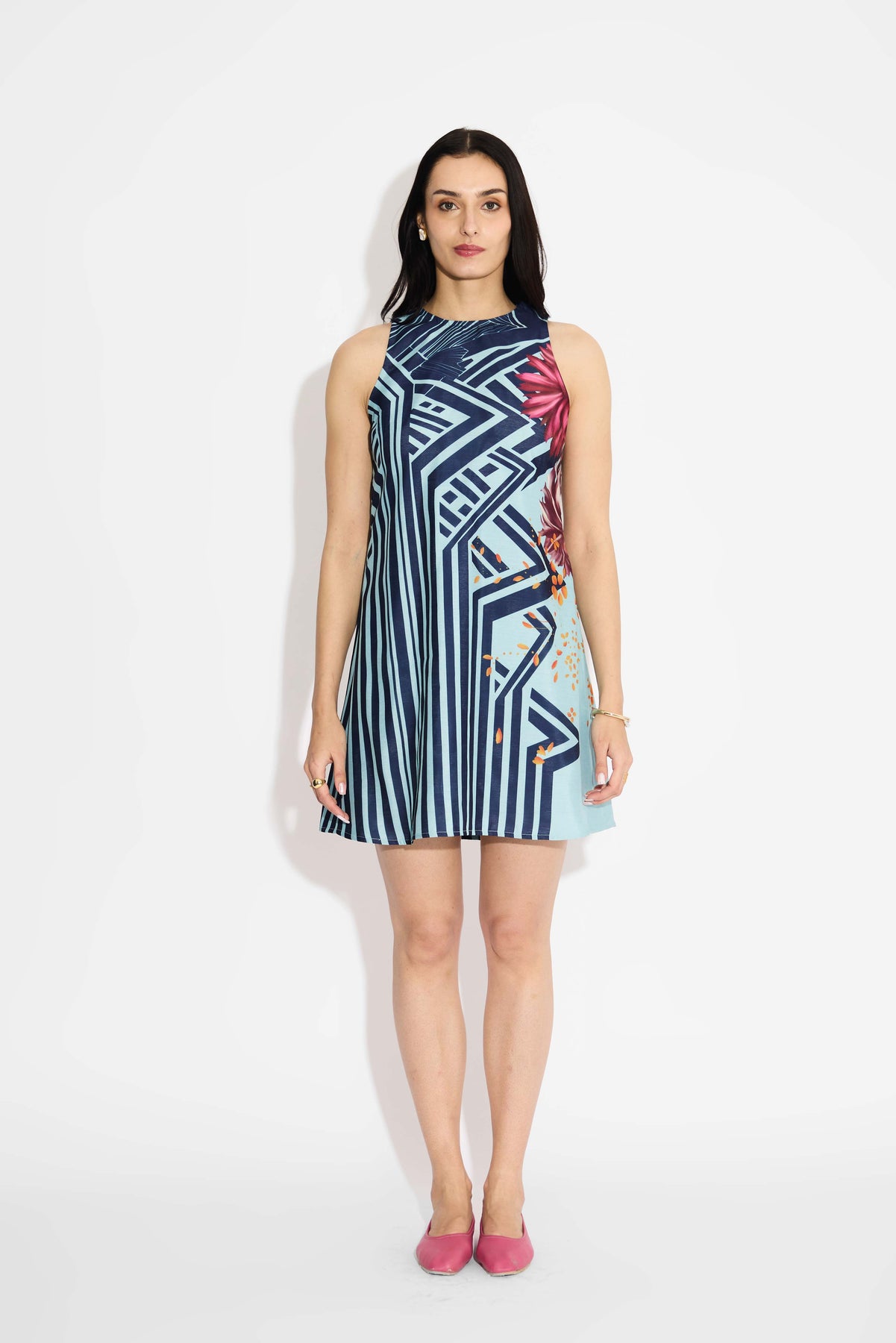 Blue Stripe & Floral Shift Dress