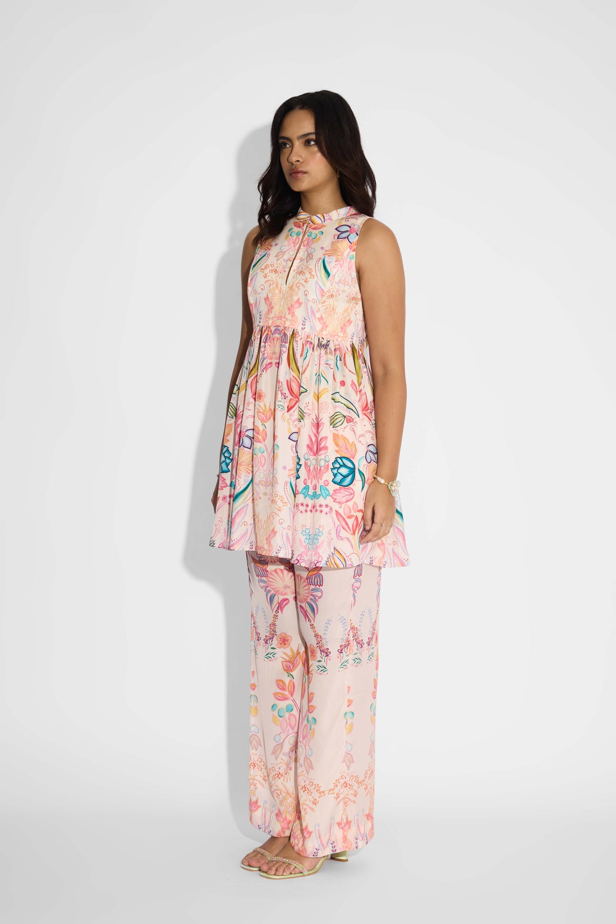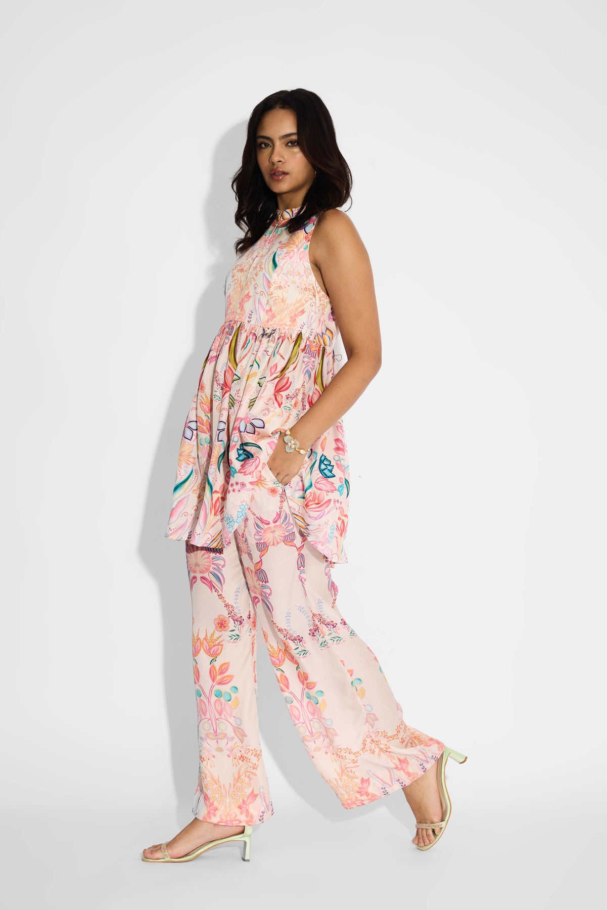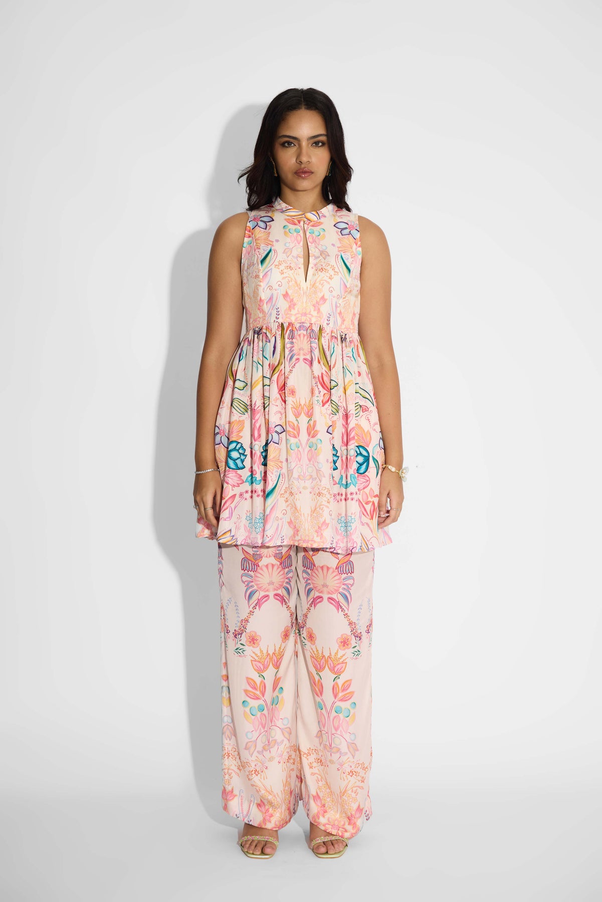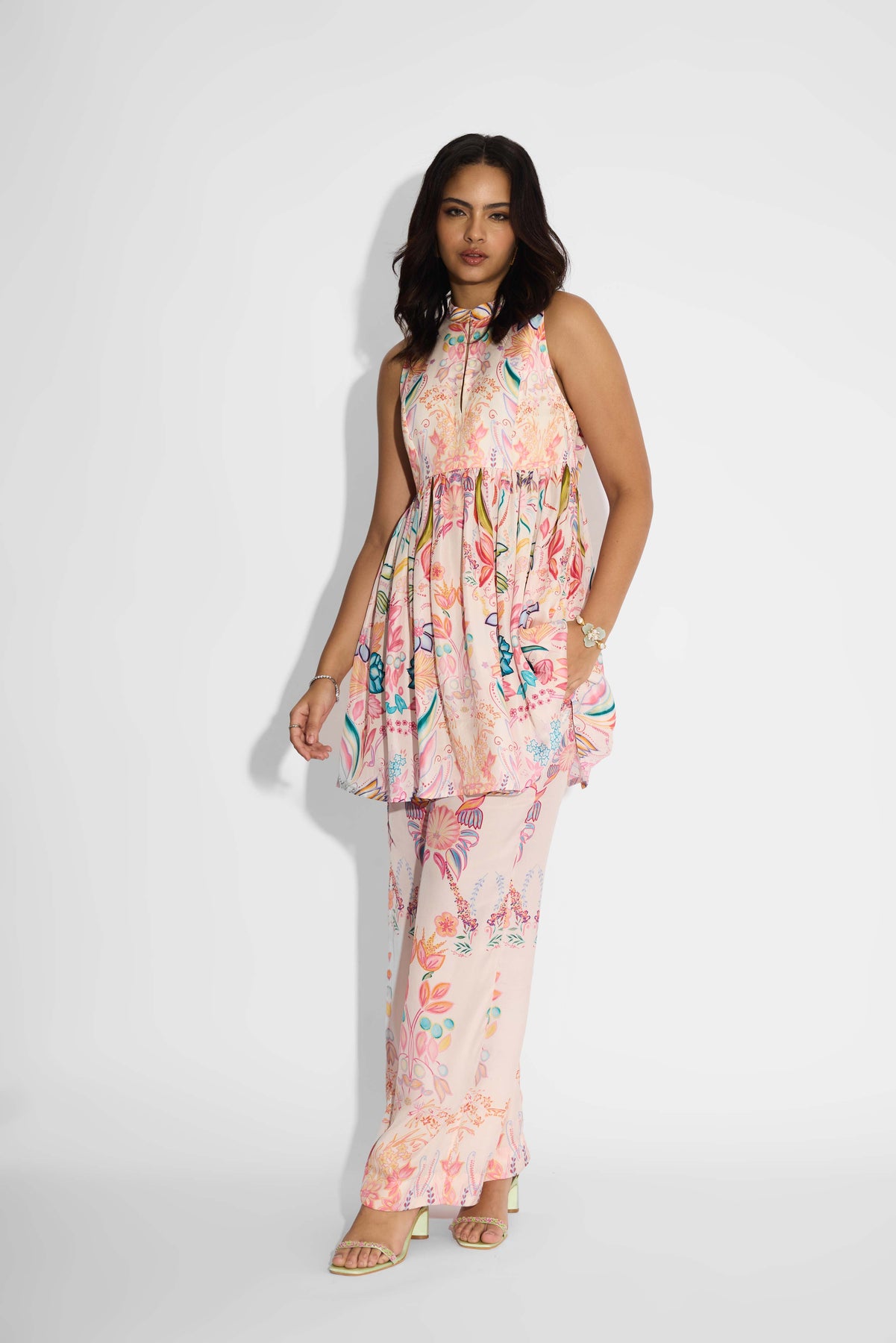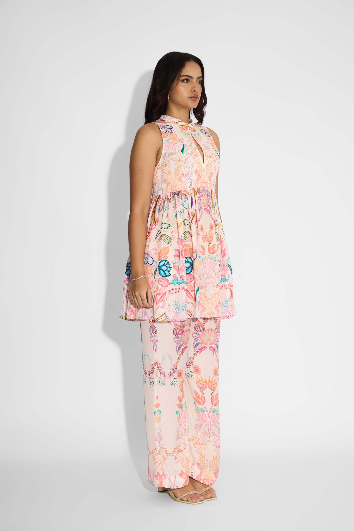 Pale Pink Floral Peplum Set