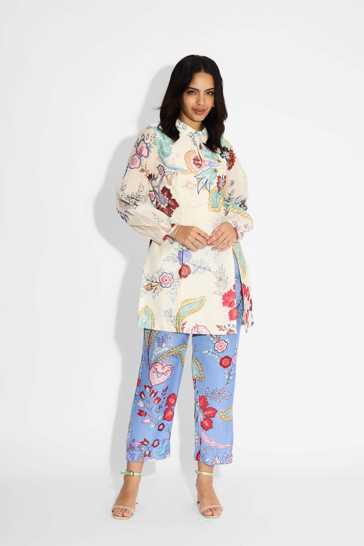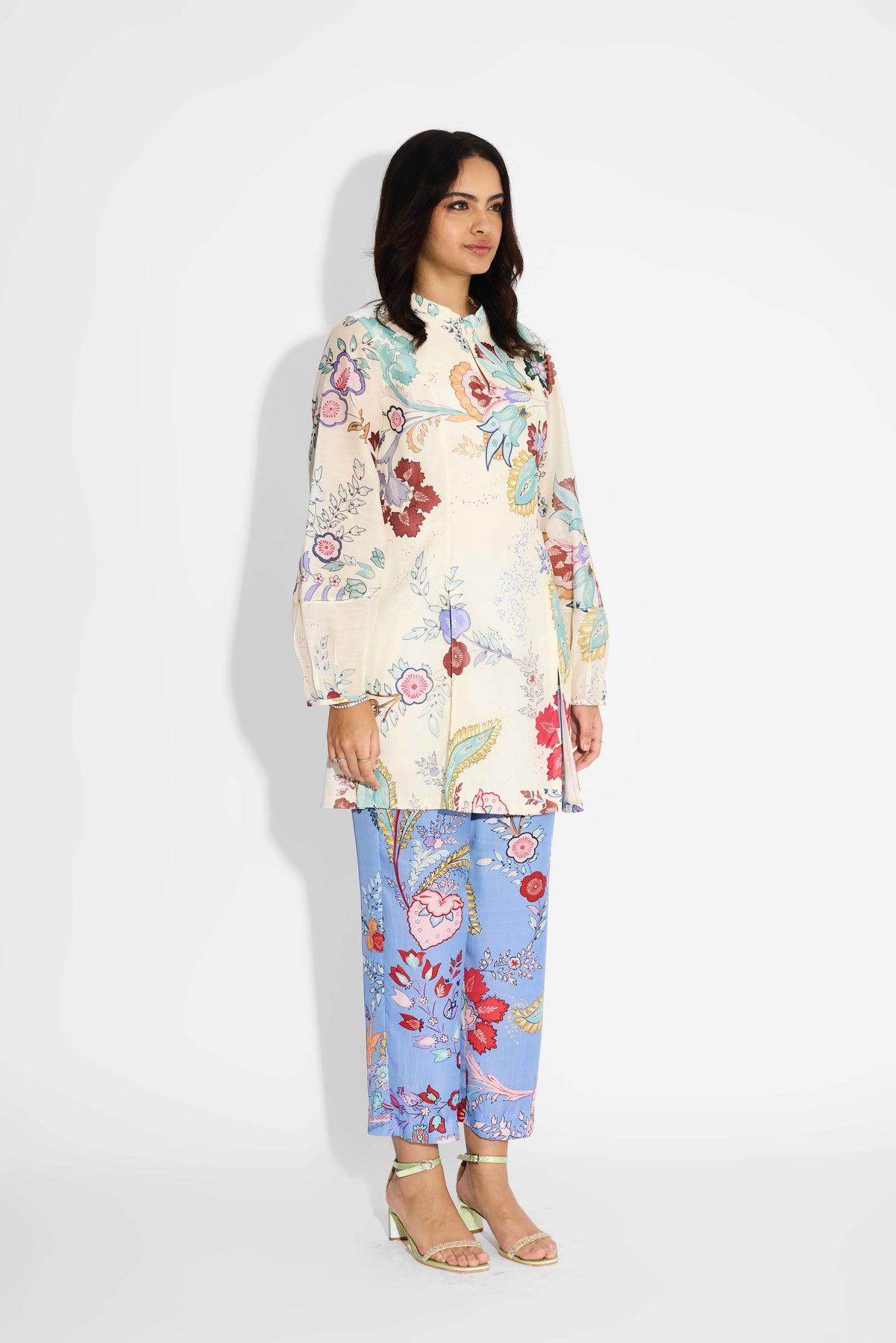 Ivory Chintz Printed Double Slit Kurta