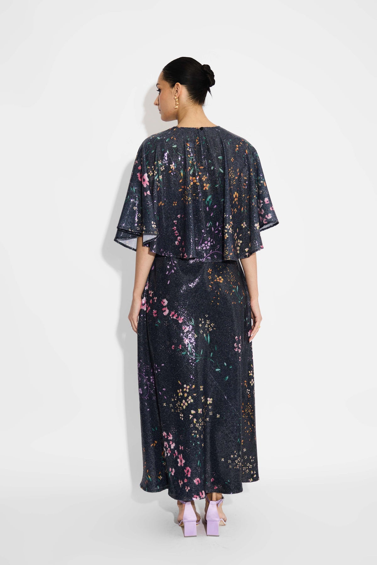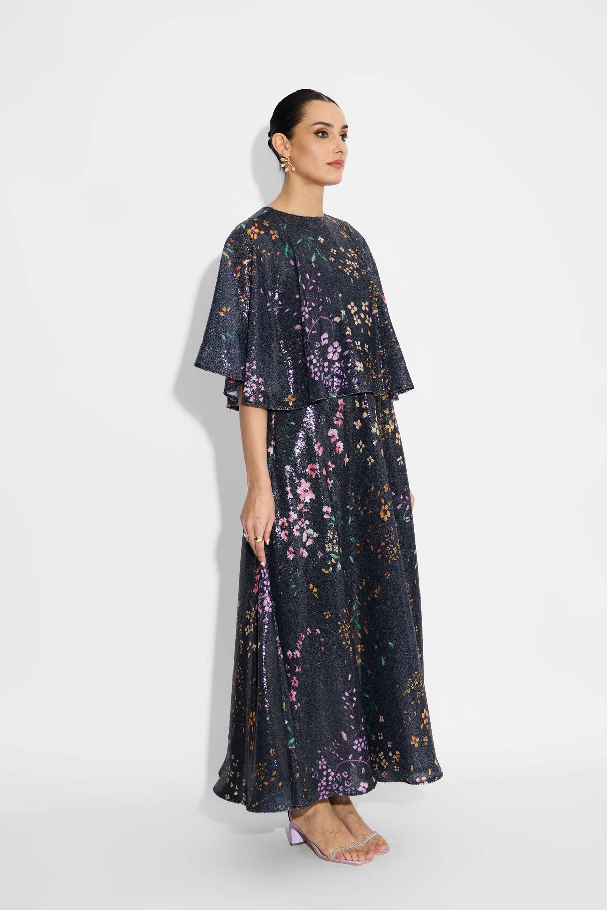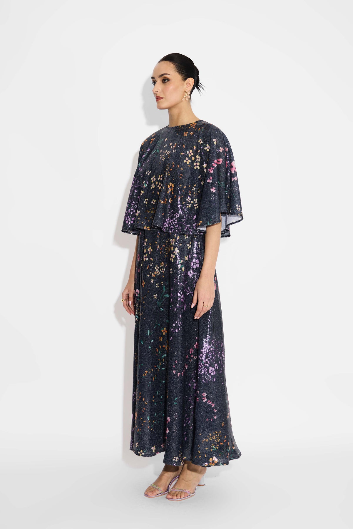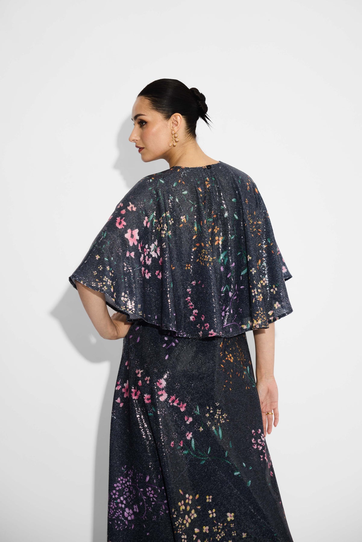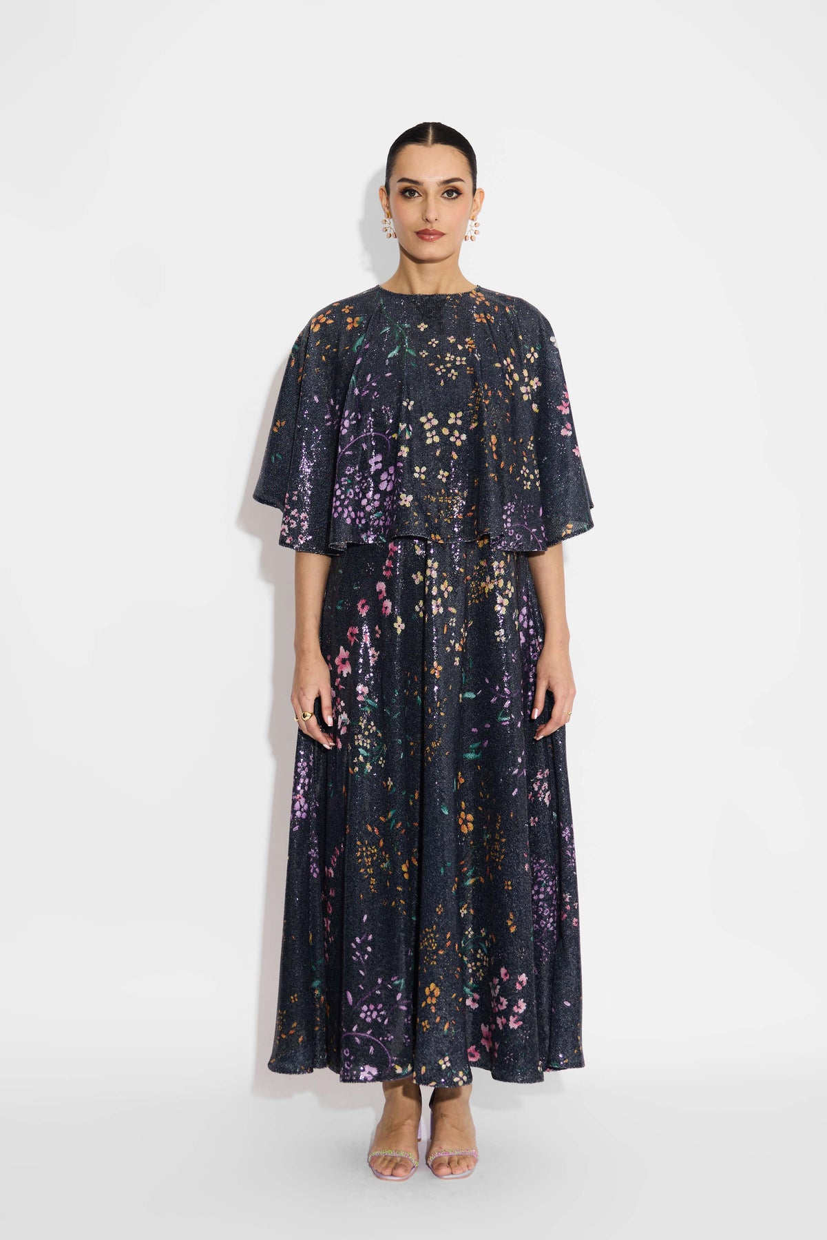Black floral sequin dress