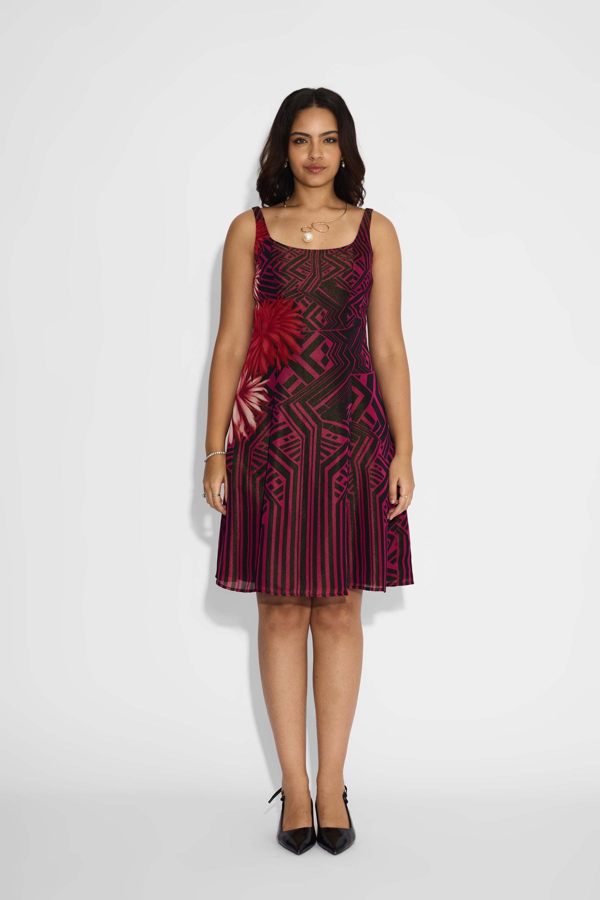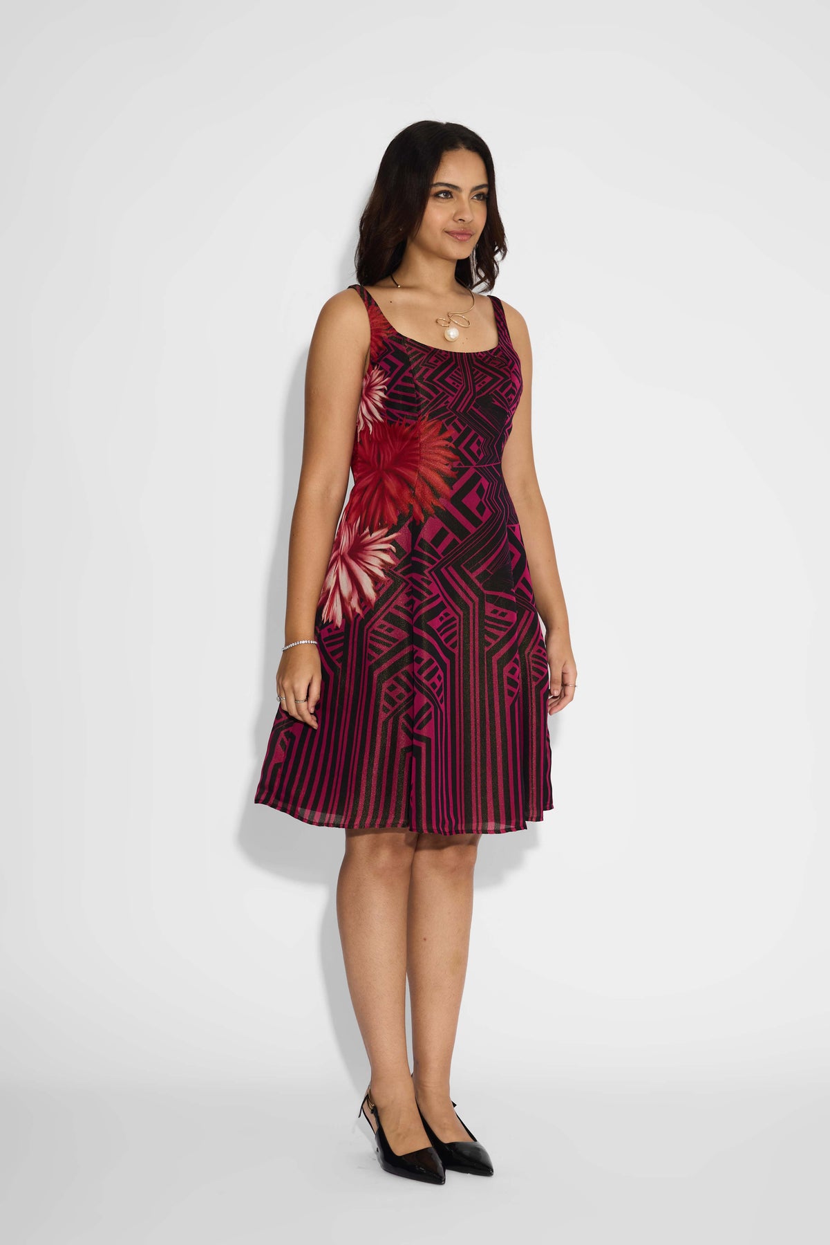 Black & Pink Stripe Floral Dress