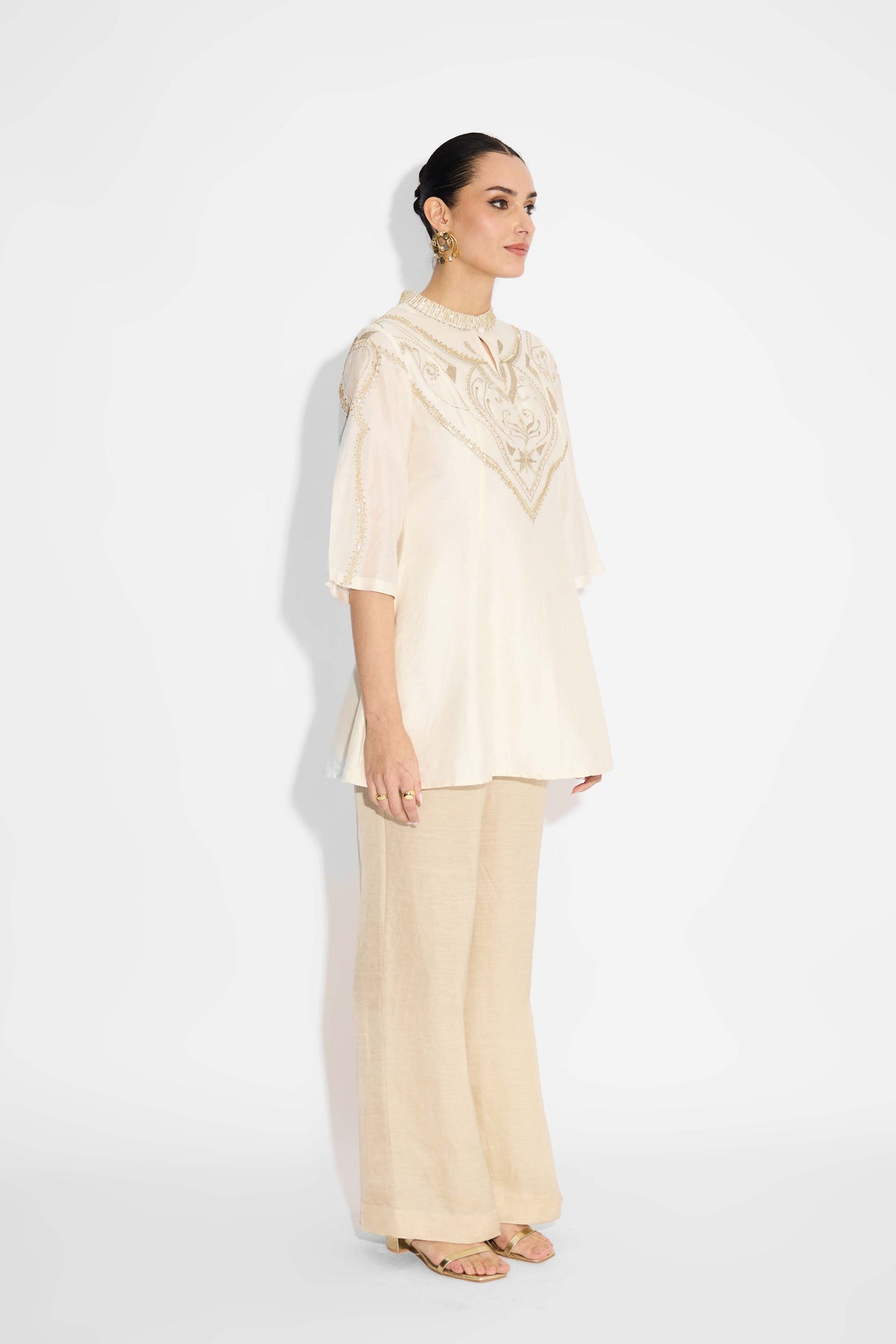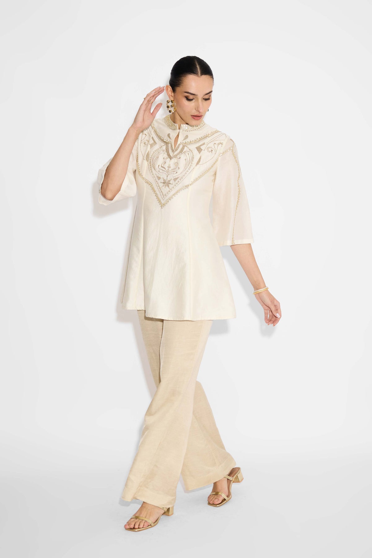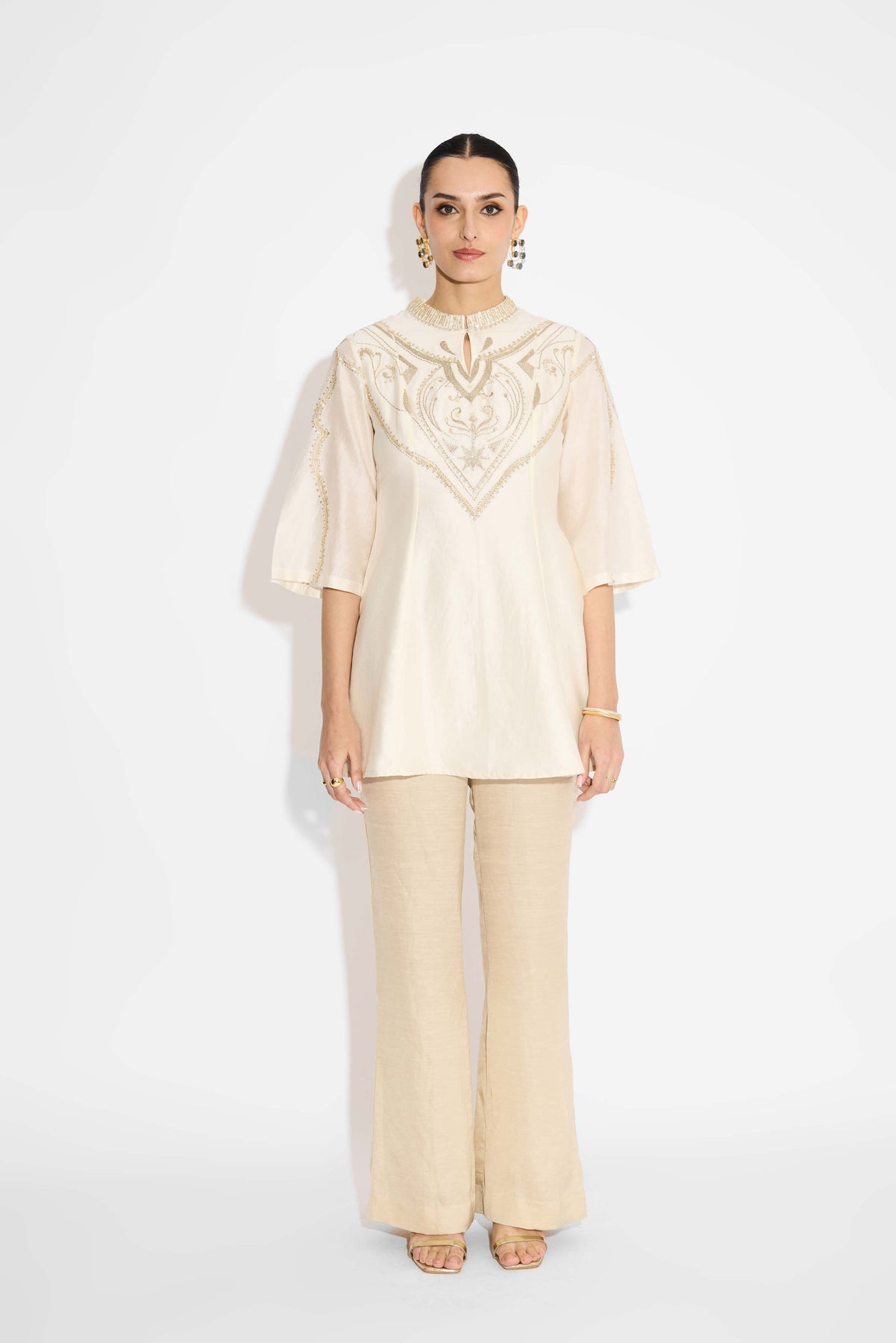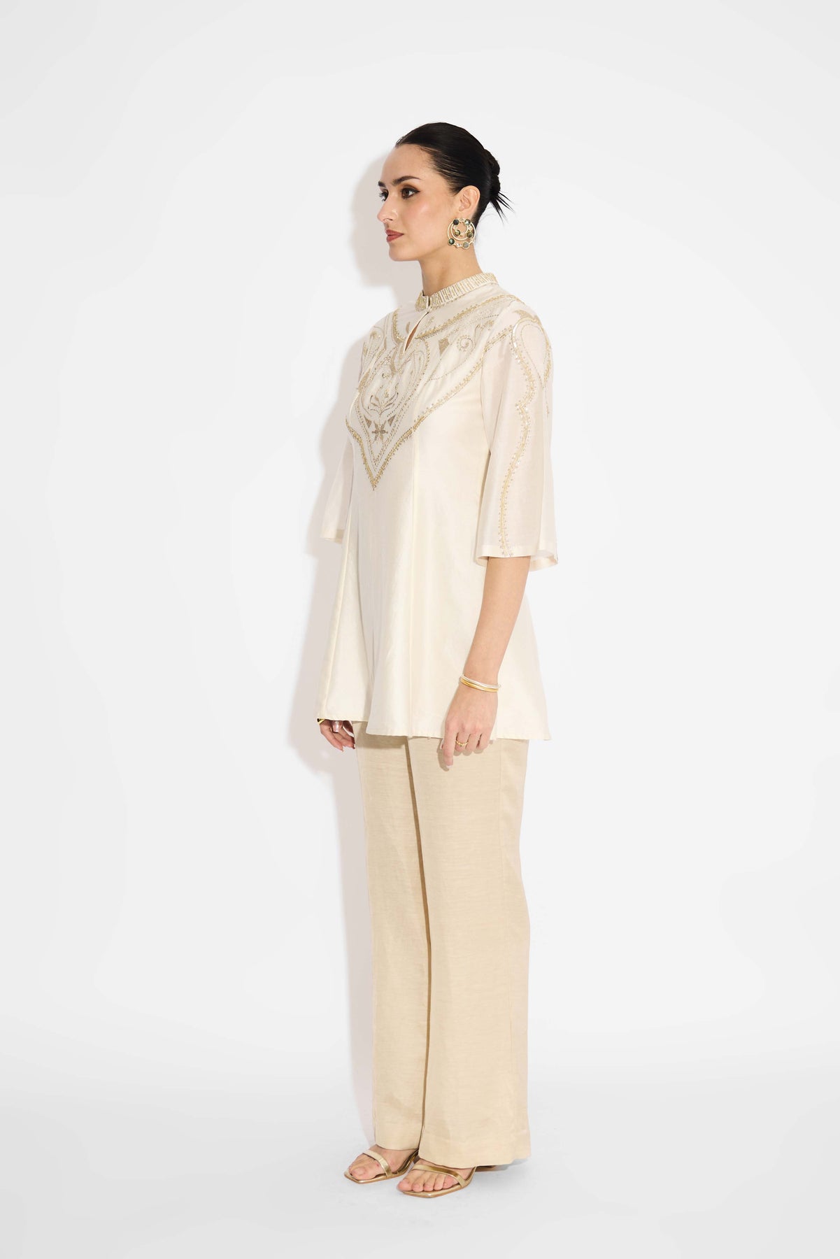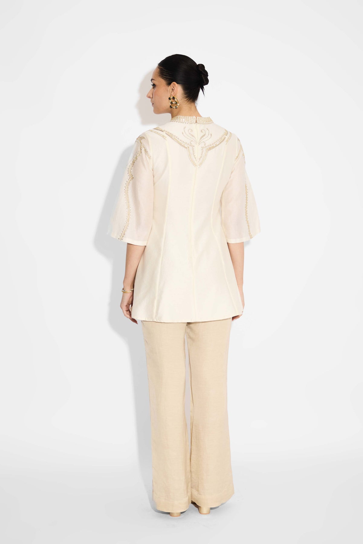 Pearl Embellished Ivory Short Embellished Kurta