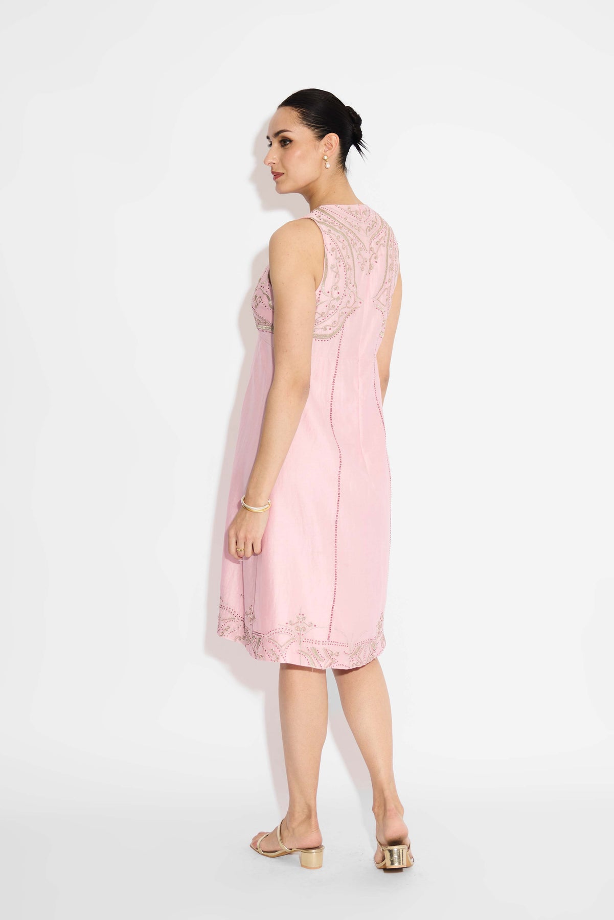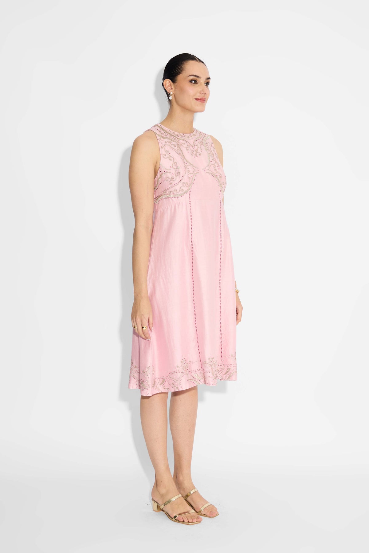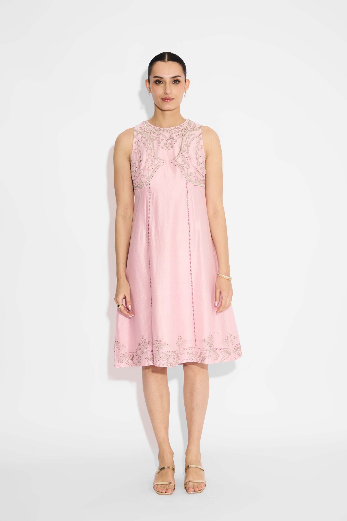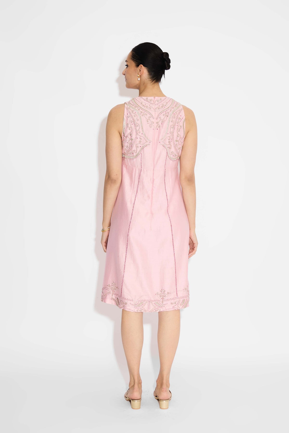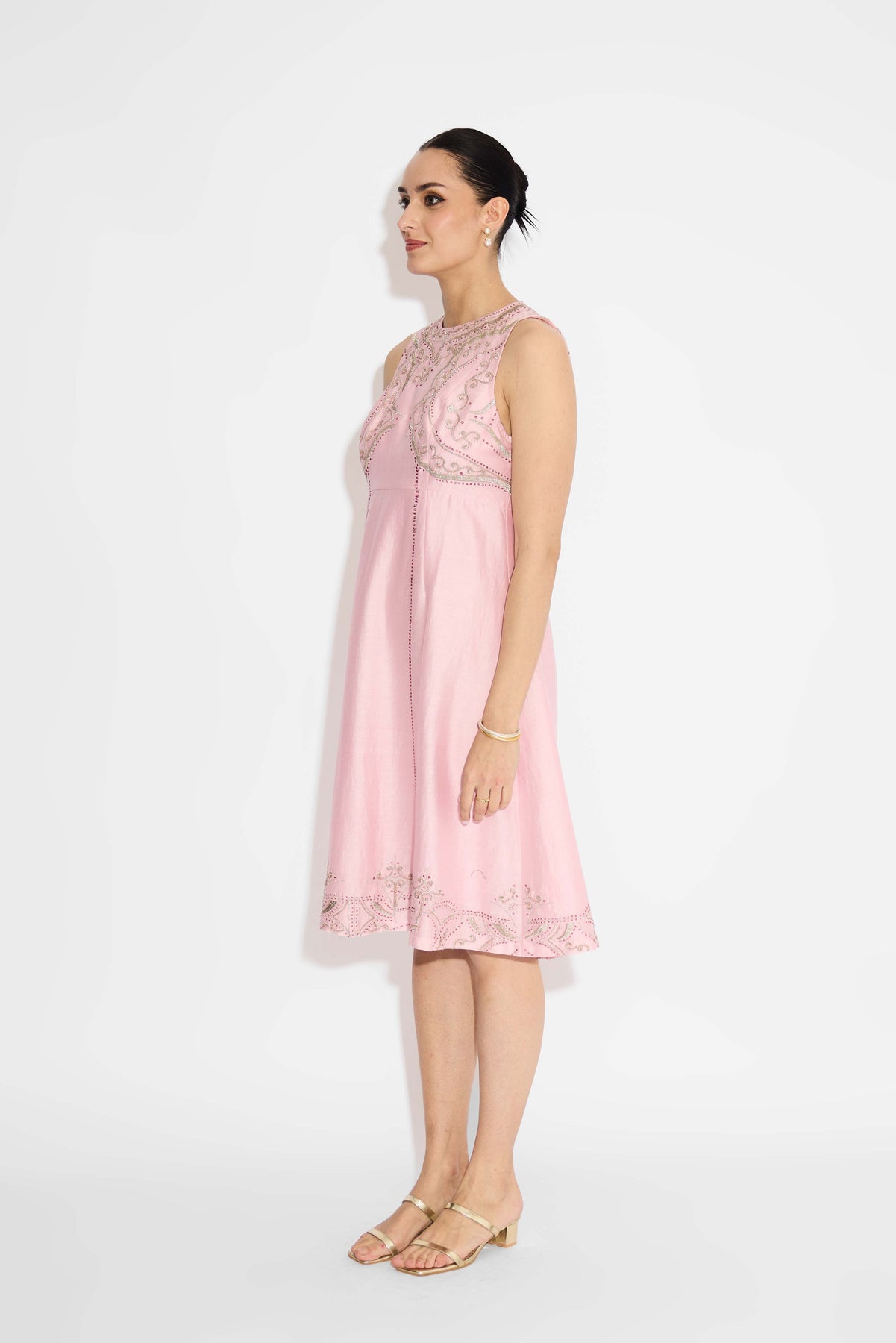 Silver Embellished Pink Long Dress