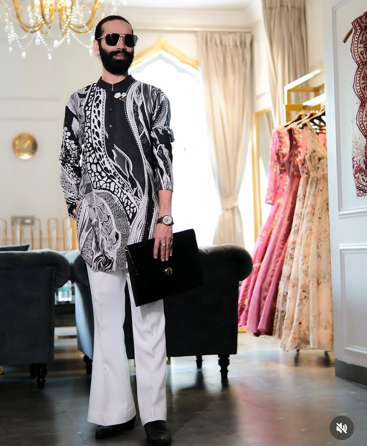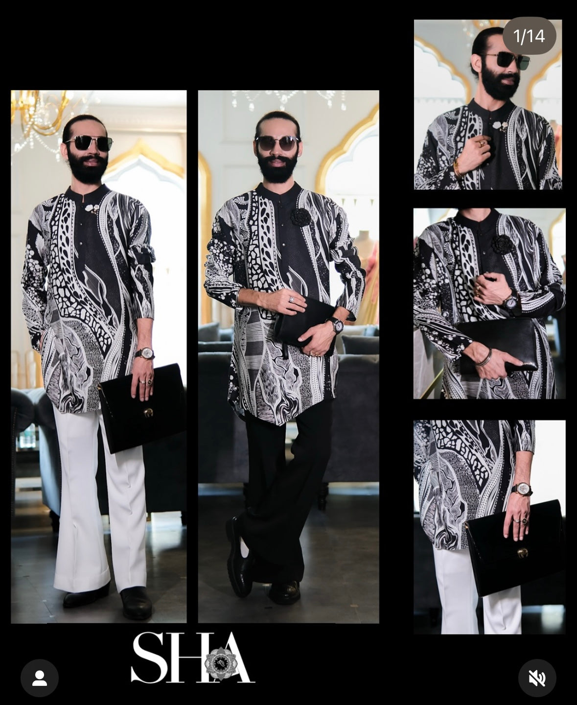 Jasbir Mehta Styled in our MORPH DRIFT Black Short Kurta Set