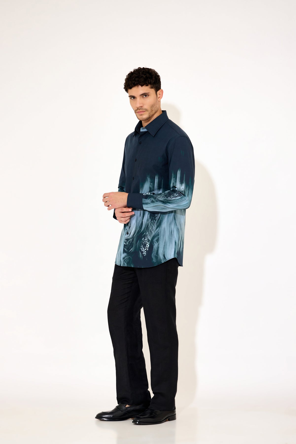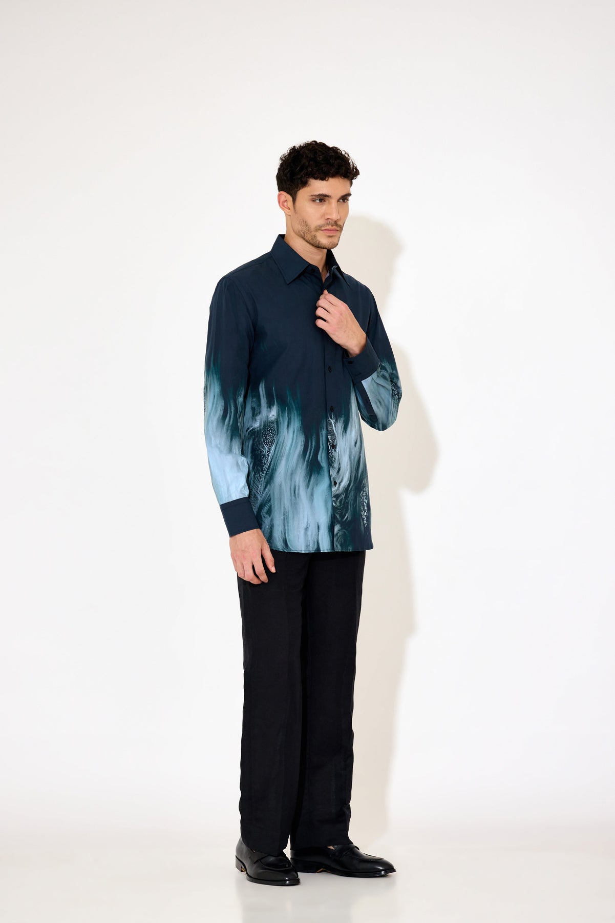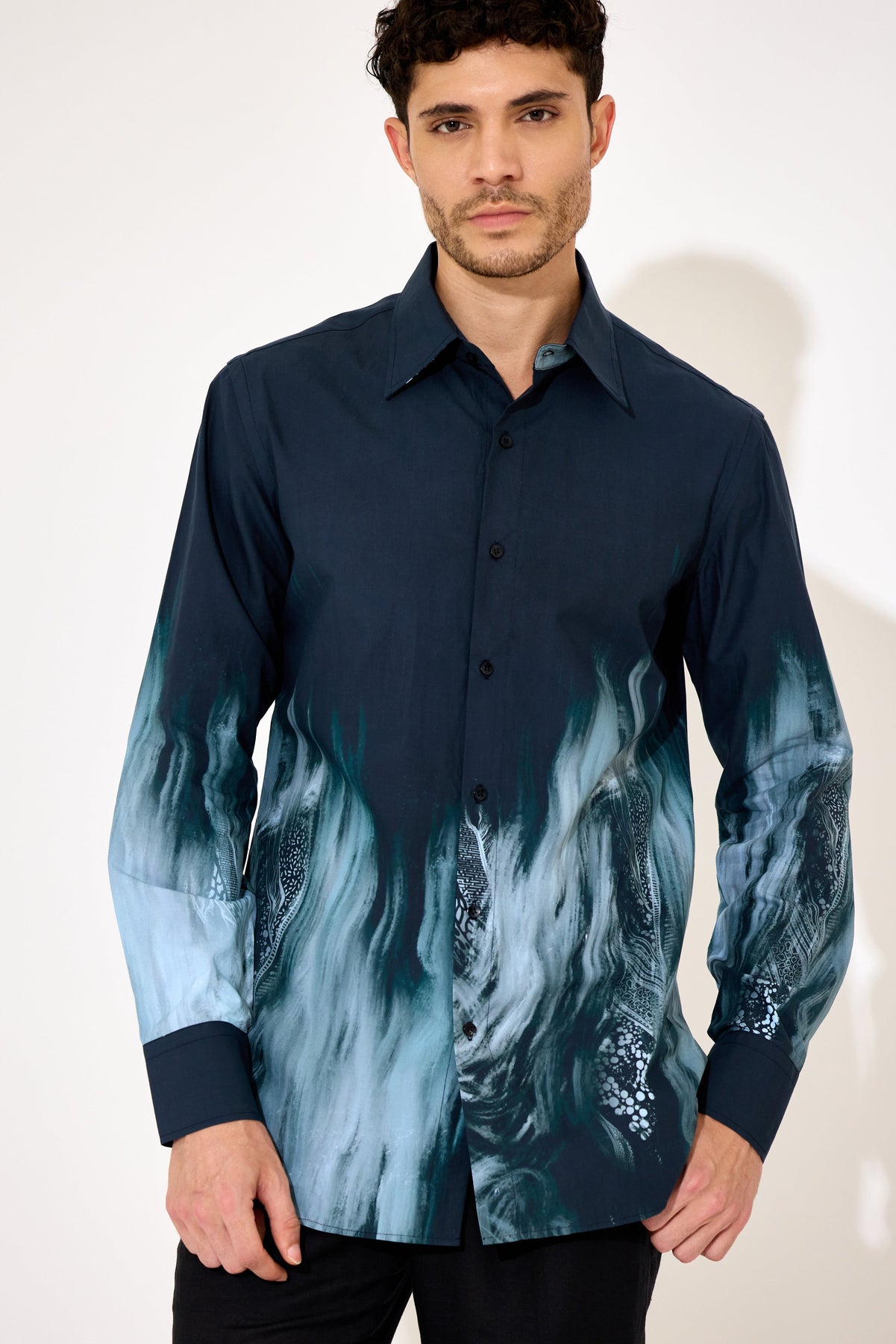This men's printed poplin shirt features a distinctive abstract print that adds a refined artistic touch to your wardrobe. Crafted from lightweight, breathable poplin fabric, it ensures all-day comfort while maintaining a crisp, polished look. Ideal for both casual outings and smart-casual occasions, this shirt combines style and function with precision.