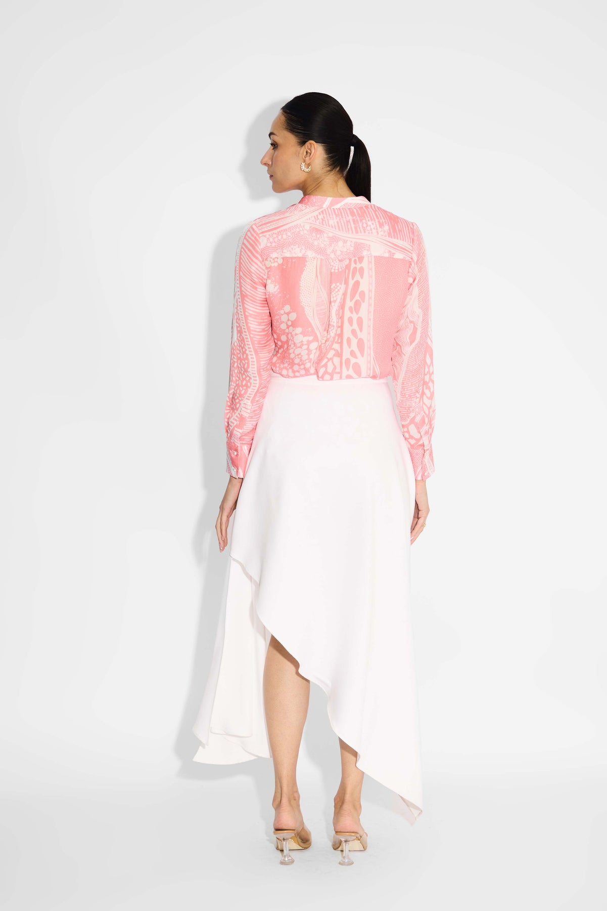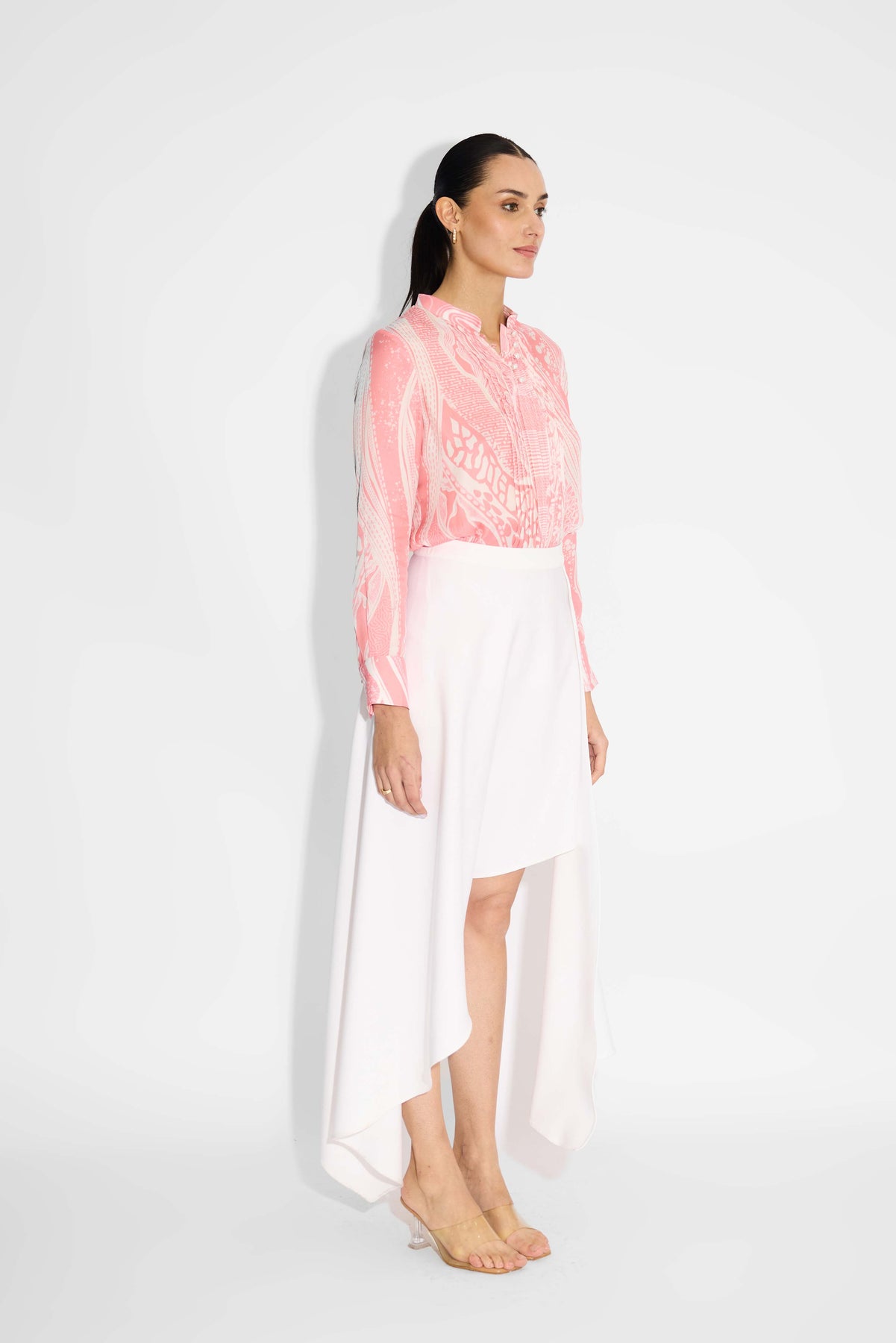 Pink Amorphous Print Pintuck Shirt